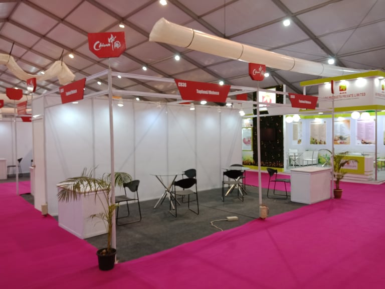 Large-scale pavilion stalls designed to maximize brand visibility and impact.